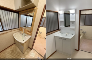 【千葉県印西市】洗面化粧台交換+クロス張替え工事|古くなった洗面所を清潔感のある空間にリフォーム