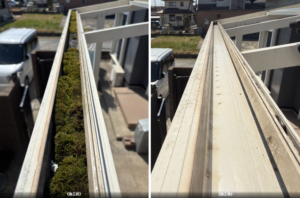 【千葉県香取市】波板屋根の雨樋清掃|詰まり・コケ除去で雨漏り防止対策