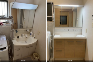 【千葉県柏市】洗面化粧台交換+クロス張替工事|LIXIL EVシリーズ(LP2(クリエペール))で使いやすく明るい洗面空間へ!