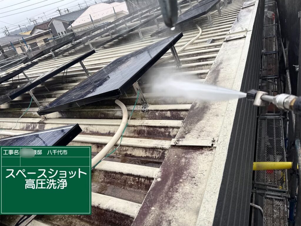施工のポイント今回の施工では、太陽光パネルが設置されている屋根という点が重要なポイントでした。