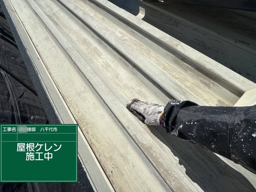 その後、ケレン作業を行い塗料の密着性を高めています。