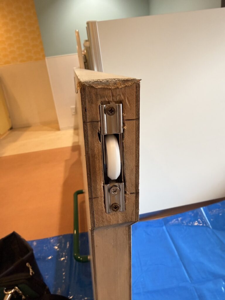 そこで今回は、戸車を新しいものへ交換し、引き戸の動きを改善する修繕工事を行いました。