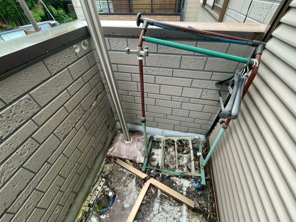 ベランダは直射日光と雨が集中しやすく、外壁の表面劣化や防水性能の低下が見受けられました。