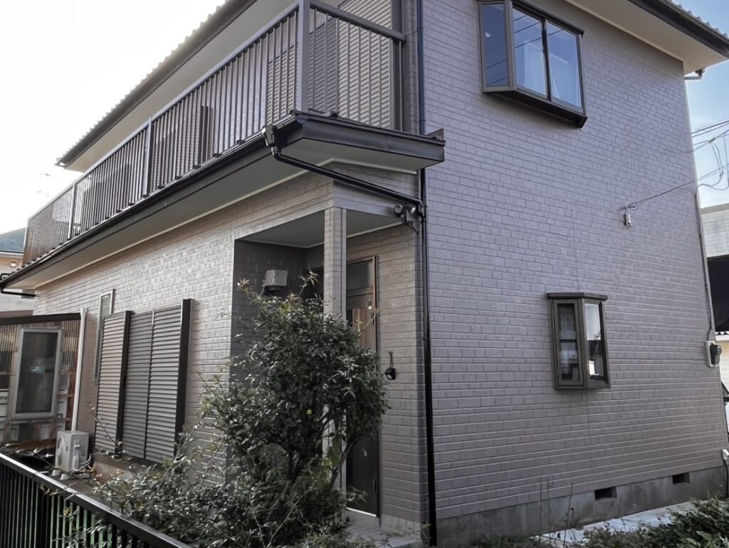 | 施工のポイント | 今回の工事では、日本ペイントのラジカル制御塗料を採用しました。 高圧洗浄で長年の汚れをしっかり除去したうえで、下塗り・中塗り・上塗りの工程を丁寧に行い、塗膜の厚みと密着性を確保しています。 築年数が進んだ住宅でも、下地状態を見極めた適切な施工を行うことで、耐久性と美観を両立した外壁塗装が可能です。 |