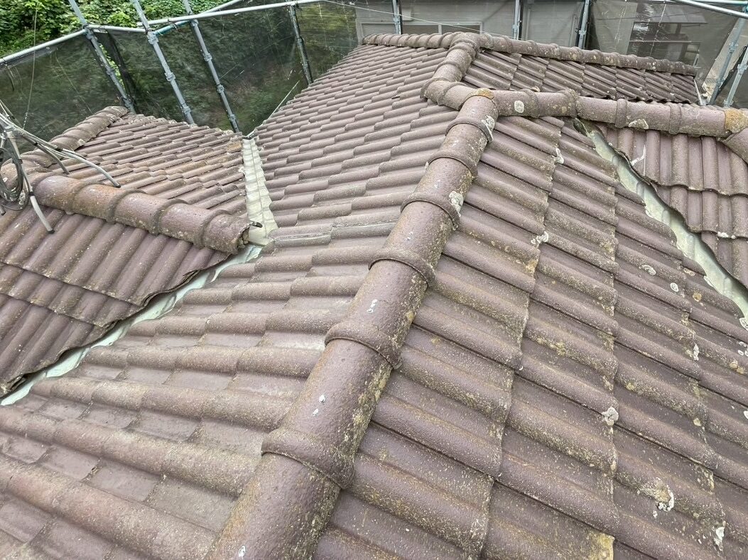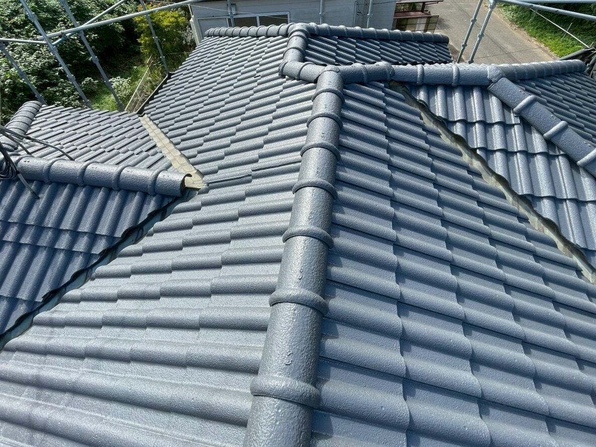 施工のポイント | 今回の屋根はセメント瓦で、吸水性が高く劣化が進みやすいため、まずは高圧洗浄でコケや汚れを徹底的に除去。 ラジカル制御塗料は紫外線による劣化を抑え、従来のシリコン塗料よりも耐候性・耐久性に優れた高性能塗料です。 ツヤと防水性を両立させることで、屋根の寿命をしっかり延ばすことができました。 |