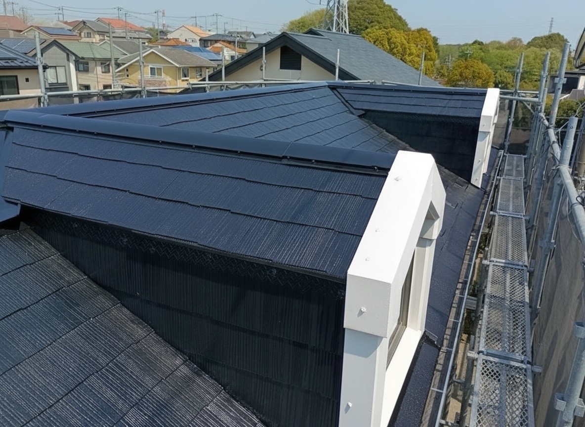 千葉県松戸市の屋根塗装施工事例:12年ぶりの再塗装で耐久性を一新!ブラックカラーで重厚感のある仕上がりに