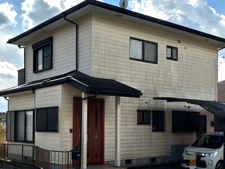 塗膜の劣化により、外壁が水を弾きにくい状態になっていました。 - 中古購入後、初めてのメンテナンス時期
